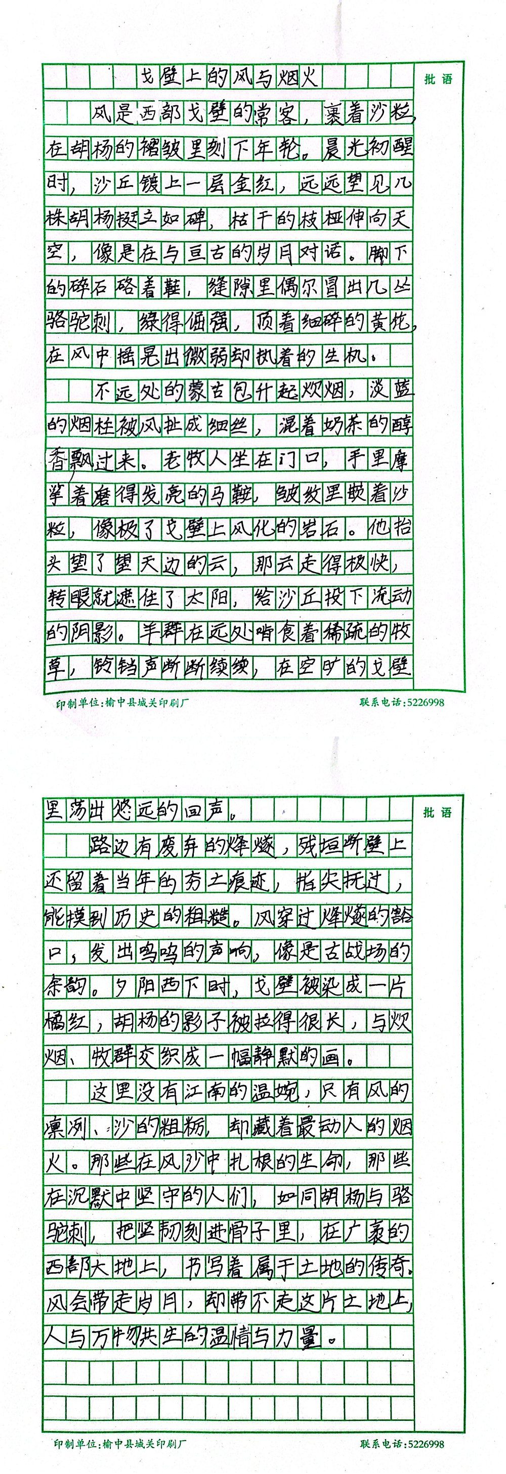 戈壁风与火作文创作理念 本文以戈壁“风”与“火”为核心意象,融入西北地域文化底蕴。风,既写戈壁风沙的凛冽苍劲,暗喻人生逆境中的磨砺与坚韧;火,兼顾落日熔金的壮丽与篝火的炽热,象征生命的**与希望。通过两大意象的碰撞交融,既展现西北戈壁的雄浑地貌与独特风情,又借景抒情,传递在严酷环境中坚守初心、绽放生命力量的主旨,凸显人与自然共生共荣的哲思,彰显西北大地孕育的精神风骨。