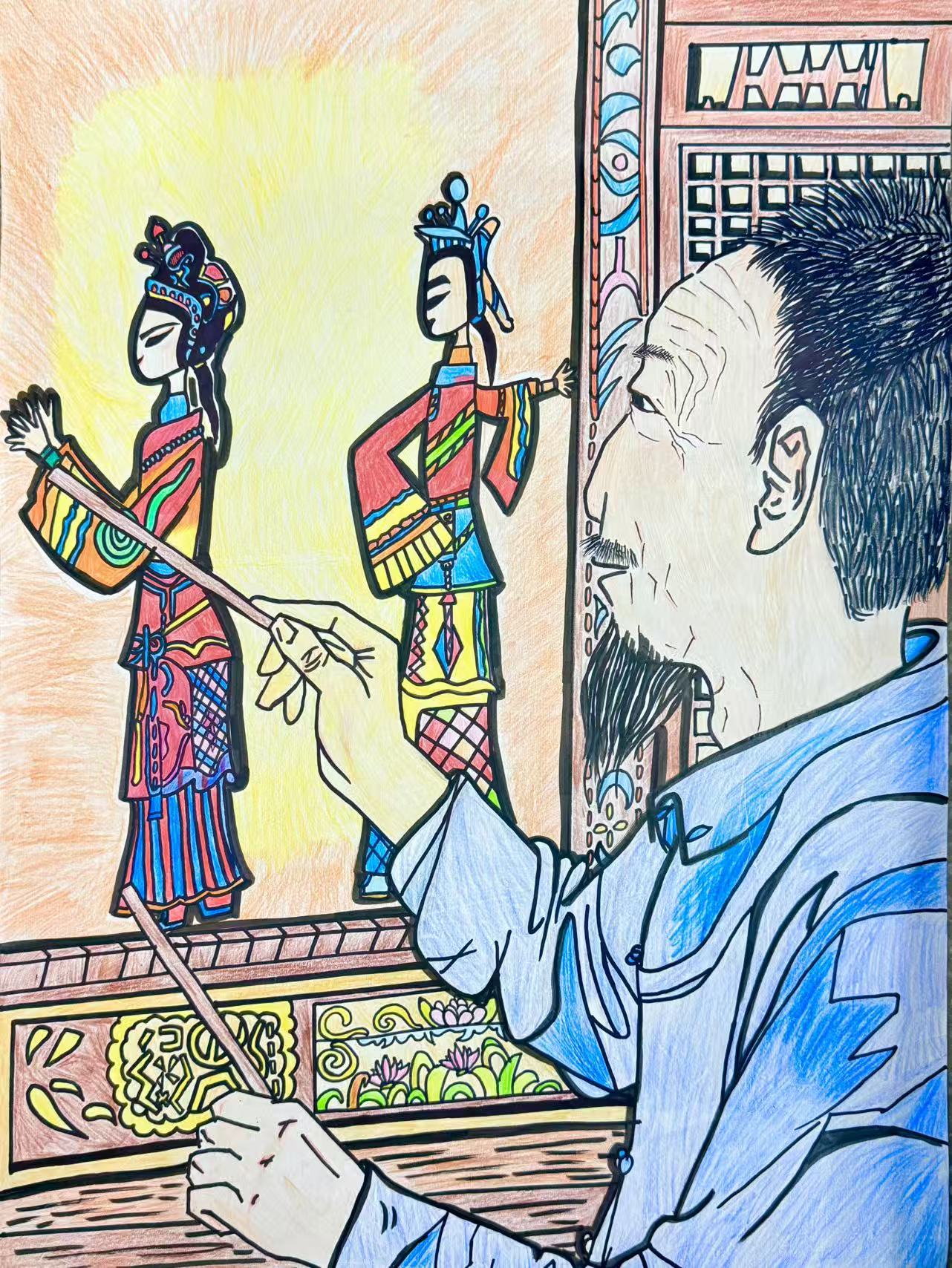 这幅画里的皮影戏,是恩阳古镇里的“活年味”——老艺人的指尖牵着川北皮影的彩衣,唱腔混着老街的腊味,把《白蛇传》《柳荫记》里的川味故事,透过亮布递给围在台下的观众。 四川皮影的“灯影戏”本就带着巴山蜀水的泼辣与温软,老艺人的胡须里缠着锣鼓的余韵,皮影上的彩线织着川人的热闹与执着:年关一到,亮布一拉,灯影里的才子佳人就成了古镇人心里最暖的年俗,把川北的烟火气,都揉进这方寸的光影里。