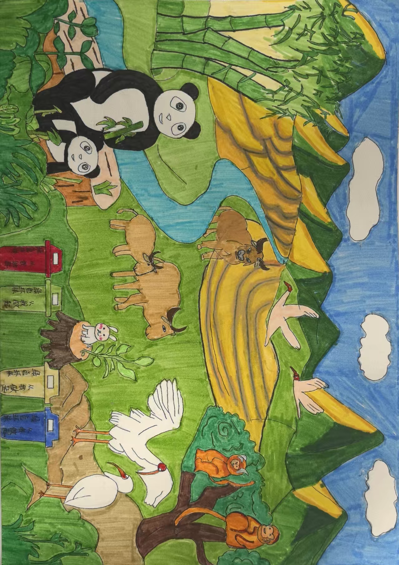 晨雾裹着秦岭,羚牛爷爷把大熊猫、朱鹮、金丝猴召到杉树下:风里竹香淡了,坡笋沾着塑料纸,溪水漂着碎渣。 “周末城里人的车排到山根,竹子被踩得蔫头耷脑。”大熊猫抱枯竹嘟囔。 金丝猴跳上树杈:“关中人举着相机呼朋引伴,垃圾能飘上了枝头。” 朱鹮展翼叹气:“炊烟混着尾气难闻,河水碰不得。” 羚牛蹄蹭土:“游客、商贩踩松了山土,家快没模样了。” 没等太阳爬高,四宝拽藤蔓、衔松枝,立起带爪印的“绿约”木牌:轮班守笋溪,护秦岭的绿。 此后坡上多了捡垃圾的白影,溪边长了理水的红羽,树杈间晃着劝轻声的金绒——这是四宝的“绿约行”,要把清风吹竹的日子,捡回来。