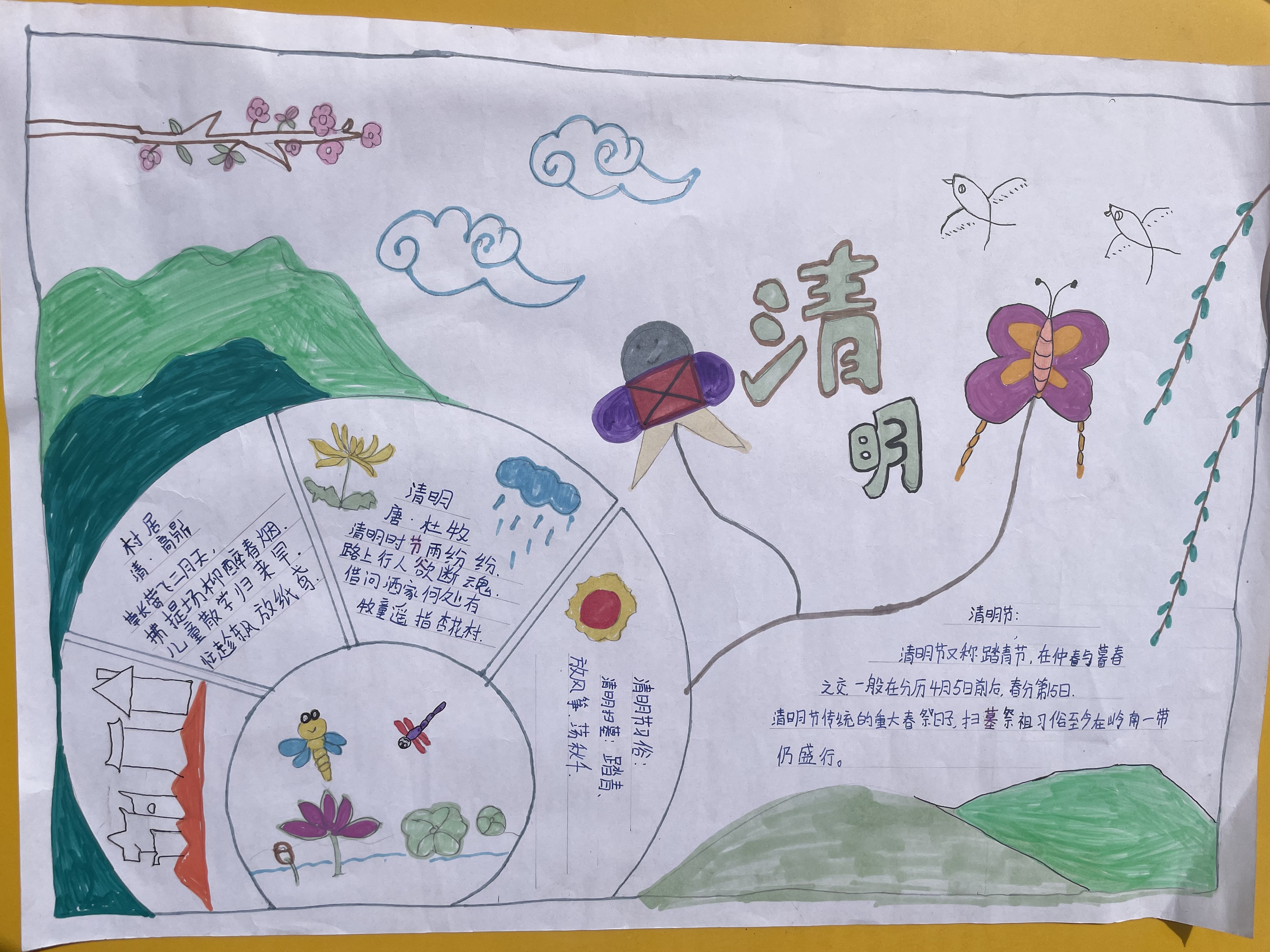 清明,是二十四节气之一,春季的第五个节气。斗指乙,太阳到达黄经15°,便为清明。清明节气因为节令期间"气清景明、万物皆显"而得名。清明是反映自然界物候变化的节气,这个时节阳光明媚、草木萌动、百花盛开,自然界呈现一派生机勃勃的景象。中国南方地区,此时已呈气清景明之象;北方地区开始断雪,气温上升,春意融融。清明一般在公历4月4日至6日之间变动,并不固定在某一天,但以4月5日最常见。清明既是节气又是节日,清明节气在时间和天气物候特点上为清明节俗的形成提供了重要条件。清明节气,与岁时物候相关,常以指导农事,有天朗气清、春耕时宜之意;清明节日,是人们扫墓祭祖、慎终追远的日子。