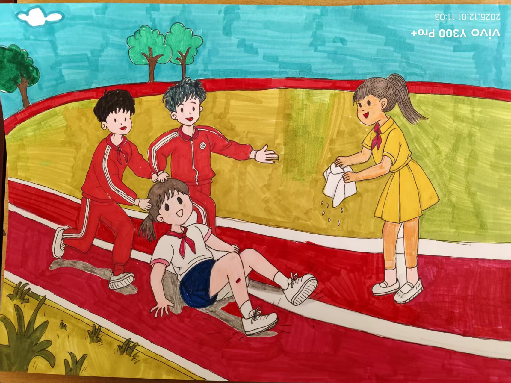 我和同学们一起在操场上跑步,我不小心摔倒了,碰破了腿鲜血直流,这是同学们马上 把我扶起来,给我进行包扎,班长的妈妈是护士,她跟妈妈学过简单的包扎,她就给我包扎好了,血止住了,也不那么疼了,得到同学们的帮助,我觉得疼痛立马减轻了许多,同学是多么好啊!