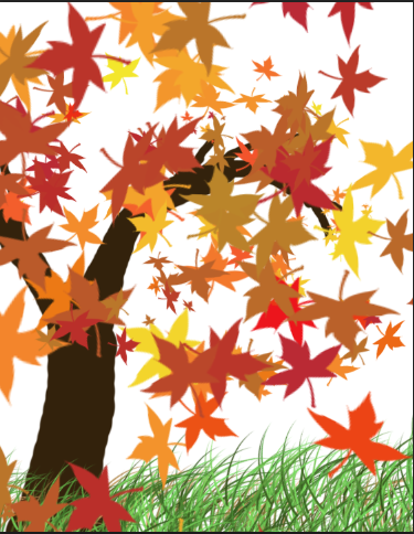 名字:《金秋叶舞》 简介:这幅画以秋天为主题,棕黑树干撑起满树斑斓,红、黄、橙叶片似灵动火焰,纷纷扬扬飘落。翠绿草地作底,衬出季节交替的诗意。色彩明快且富有层次,将秋叶飞舞的动态与秋景的绚烂完美融合,传递出金秋独有的浪漫与生机 。