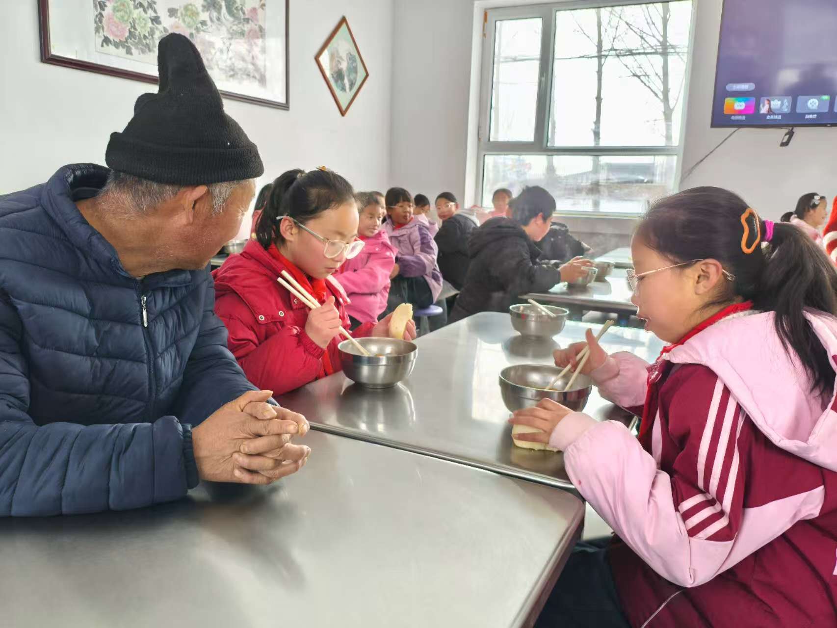 我们每天都有免费的营养早餐,在学校里吃,并且吃的花样也特别多,牛奶、鸡蛋、馒头、炒菜、清汤牛肉、牛肉香头子,每天一样新的花样,决不重复,色香味俱全,营养搭配更好。 听着这些名字,你是不是口水就已经流下来了。 今天早晨爷爷送我到学校来,顺便走进学校餐厅和 我们一起吃起了我们的营养早餐。 "这么多的肉,这么好吃的饭菜,你们可要认真吃啊不能浪费了"爷爷吃了第一口就赞不绝口,要求我们认真吃饭,懂得"粒粒皆辛苦"节约粮食的道理。 我们认真的吃着,记下了爷爷的教导,并且心里想我们也要感恩新中国、感恩父母、感恩学校给我们提供了这么好的生活学习环境,长大了也为更多的人做贡献。