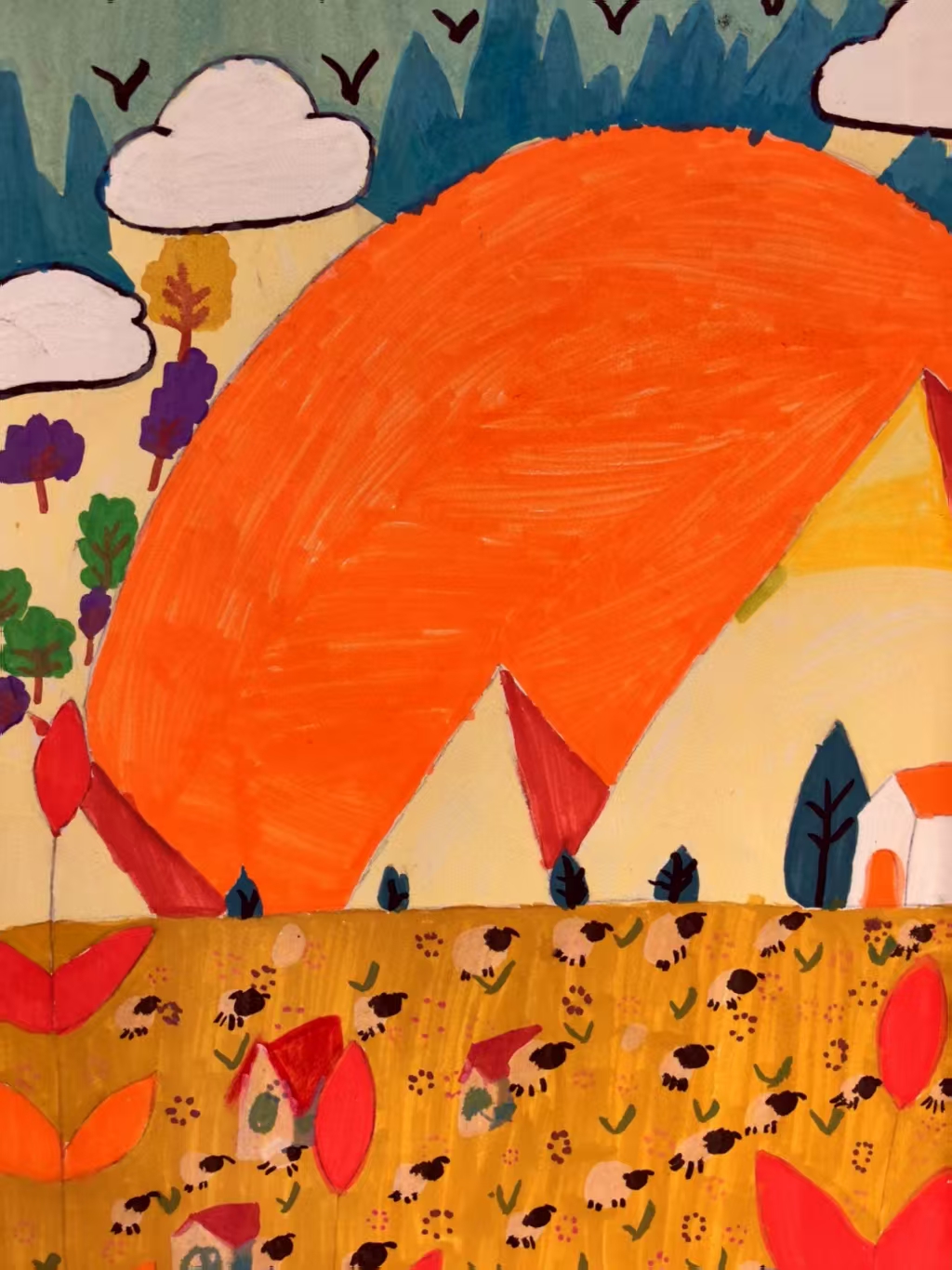 秋天是什么颜色?回答一定是金黄色的。家乡的秋天确实是金灿灿的。你看:近处的稻田稻穗金黄,成群的鸟雀围拢来庆贺,叽叽喳喳述说着丰收的喜悦;新修的仓储橘红色的屋顶格外耀眼,人们收获柑橘水果后就地储藏,适时出售,买个好价钱;远山的枫叶由黄变红,苍松翠柏林立,白云飞鸟点缀苍穹,好一幅秋天的美景图。