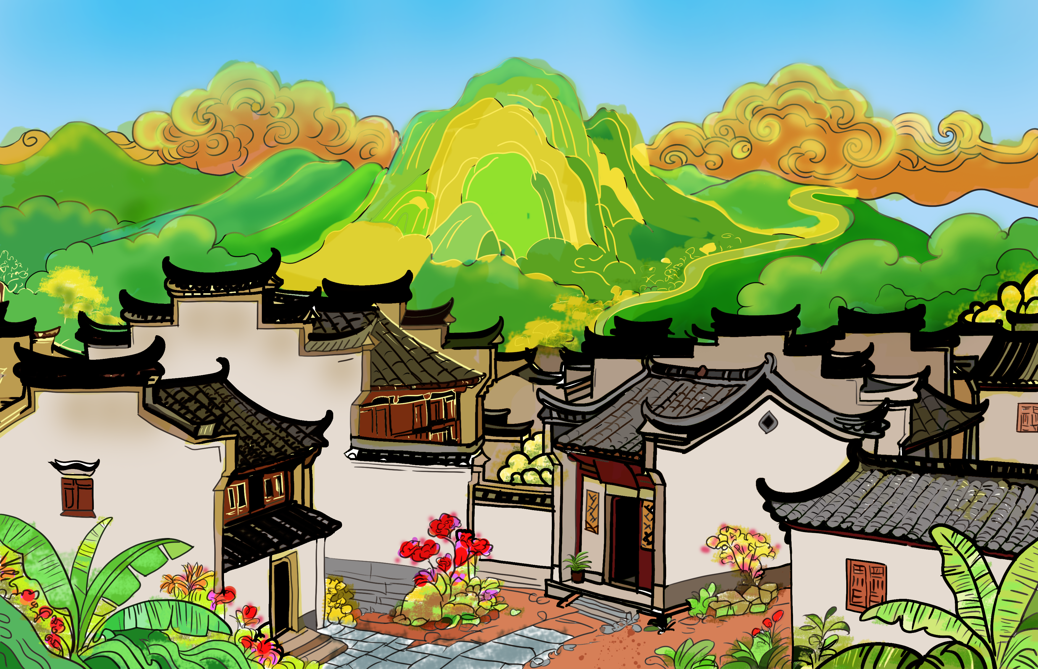 名称:《徽韵山居》 这幅画呈现的是典型徽派建筑村落,白墙黛瓦、马头墙错落有致,搭配色彩明快的山水与花草,充满诗意。徽派建筑是中国传统建筑重要流派,以砖、木、石为原料,遵循美学与风水,蕴含徽商 "贾而好儒" 文化底蕴。画面中山峦云雾、庭院繁花,展现自然与人文融合之美,传递出宁静古朴的生活氛围,仿佛让人踏入安徽古村落,感受岁月沉淀的独特韵味 。