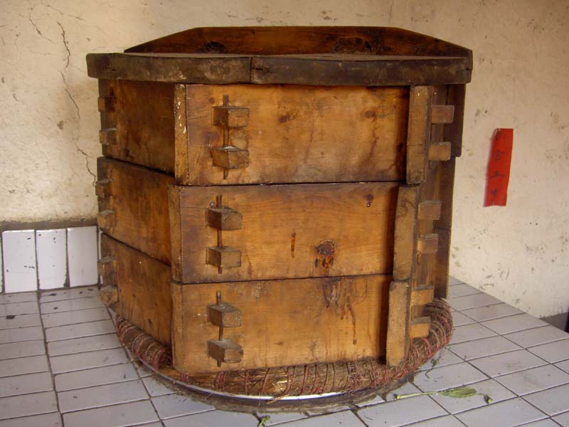 每家每户都有做馒头的工具,家家户户都有一个锅头,其中一个很大的铁锅在上面,不过它不是做饭用的,在铁锅下面还有一个火炉,他与铁锅是连在一起的。除了这些而且还有四个木头制成的蒸笼,它有六个面六个角,而且很大,它与自家的铁锅是相配的。