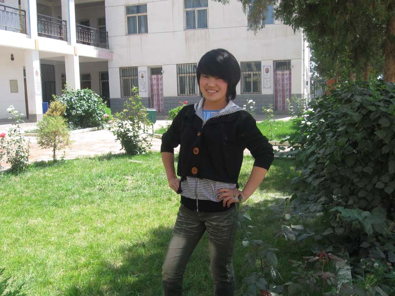 她是一位人见人爱的女孩,一头乌黑发亮的短发上戴着一个绿色的发卡,月牙般的眉毛下镶嵌着一双炯炯有神的大眼睛,棱棱的鼻子下面张着一张樱桃小嘴,恬静的小脸蛋上总是带着微笑,给人一种很亲近的感觉。