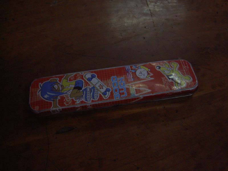我有一个精美的文具盒,是我在上小学是的奖品.长20厘米,宽4.5表面是红色的,上面有一个卡通男孩,就让我们一起走进文具盒,瞧瞧!