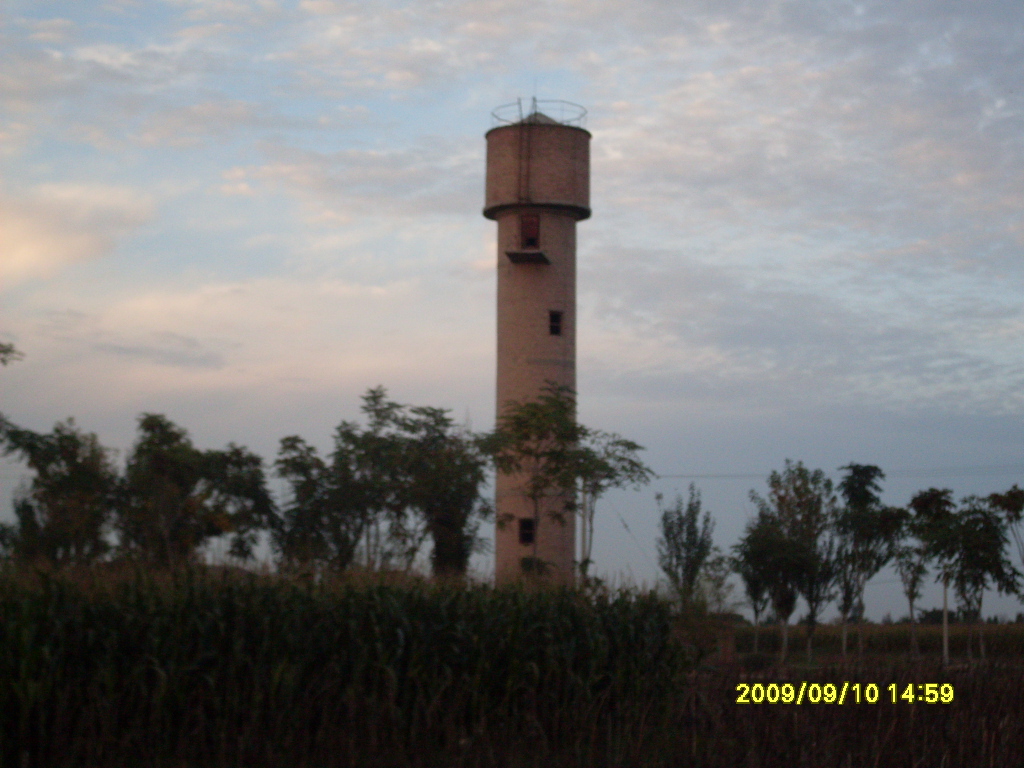 这是我们村最高的建筑物--水塔,站在学校的三楼就能看到,它屹立在村里。不过现在它已经没有什么用了,成了鸽子的家。