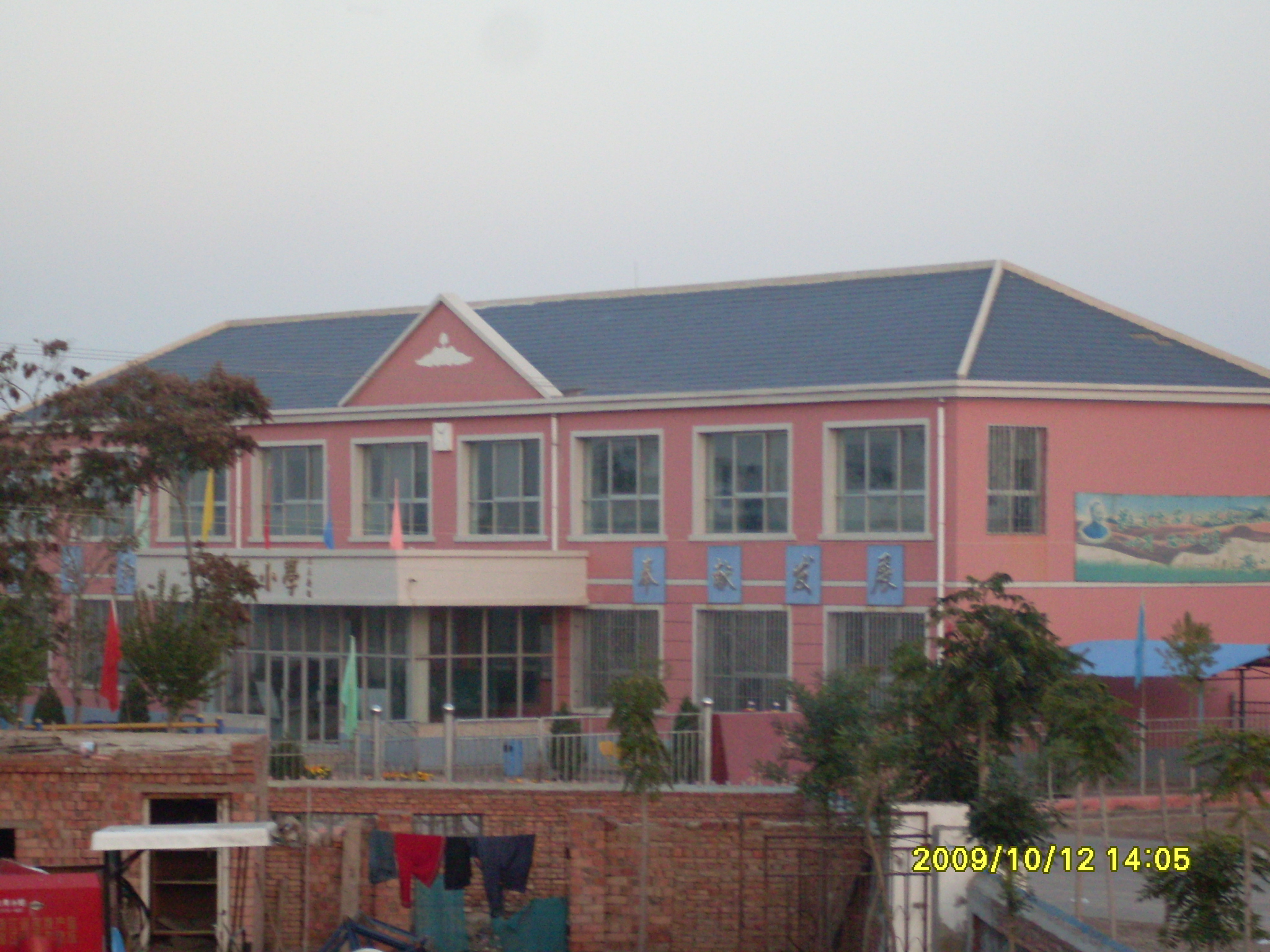 这是我们村的小学。去年才新盖的教学楼,分为两层,共有8个教室。