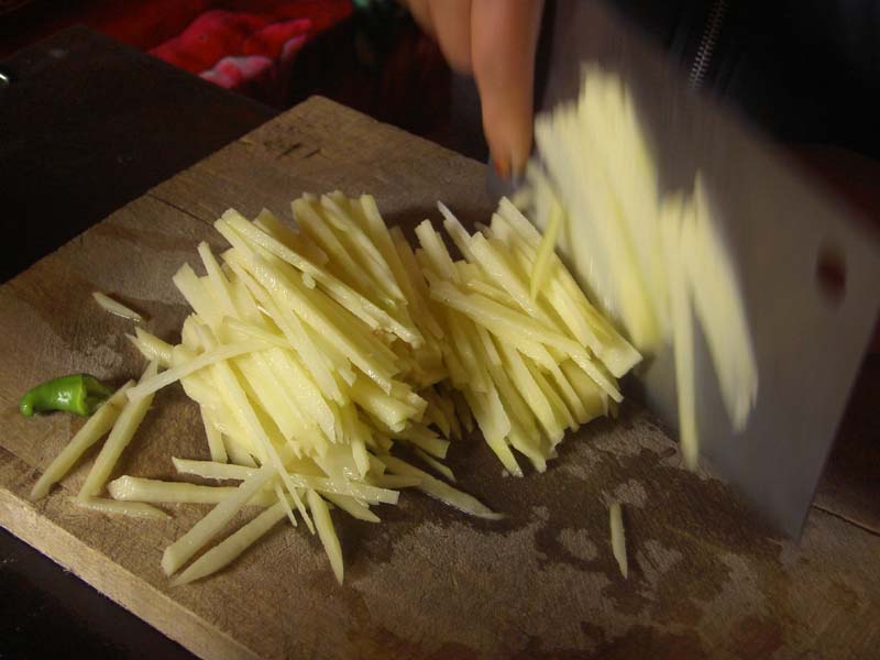 洗好山药之后就要把山药切成你喜欢的形状,但是最好要把山药切成一样大小的长条,这样炒熟后的山药菜也不会被弄糊,看上去也十分好看,再我们这儿的人们最喜欢的就是把山药切成这种形状。