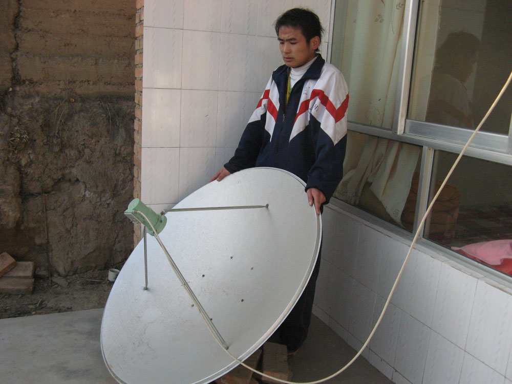 第一:将原来安装好的卫星锅不动, 将上面的接收器向西偏转到60度左右,再见原来的高度提升到4_5厘米左右.