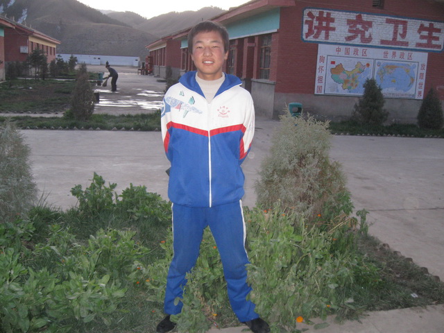 他经常穿一套校服,走起路来一摇一摆的,很惹人可笑。额头上有一颗大痣,表示他志向远大。他很有爱心,与我们相处的很融洽。他与我们一起玩耍时,就像一个小孩子似的,很可爱也很可笑。
