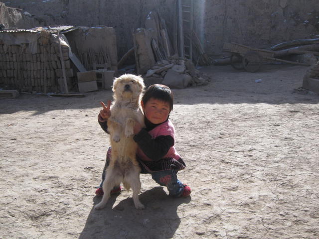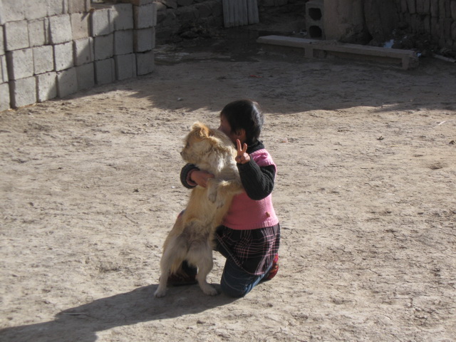 看,她现在正和我家的小狗——狮狮一起玩哪!狮狮是从大姑家抓来的,当时大姑家有许多小狗,在它们吃食的时候,我看见狮狮跑得最快,吃的最好,正因为它的好吃和机灵才让我们选中了它。自从小狗来到了我家后侄女就一直和小狗在一起,慢慢的她和小狗产生了感情,只要她一来小狗就跑去和她亲热了。