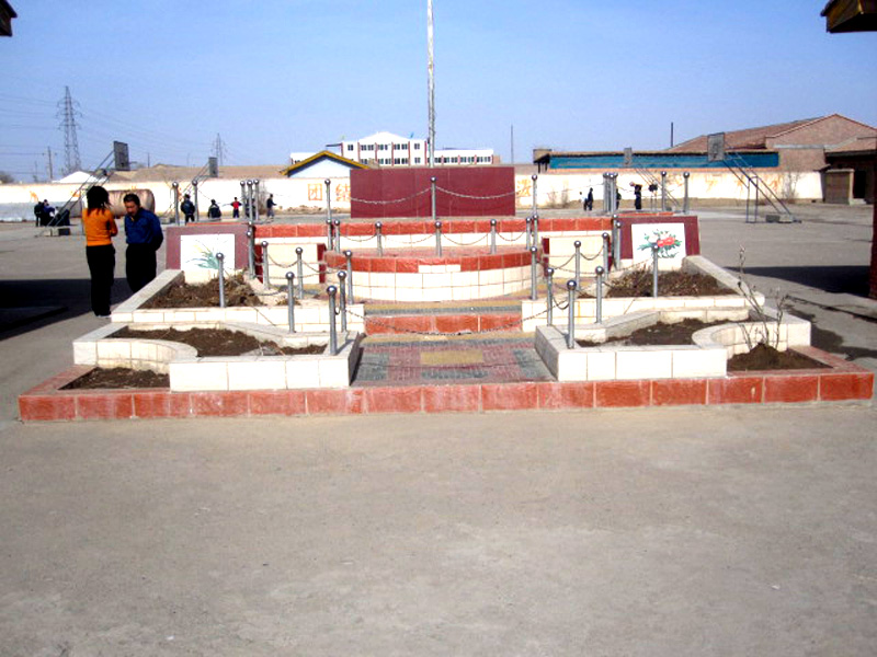 在旗台的后面还有一个花坛。花坛里的花真可谓是美丽动人,在这些花儿蓬勃向上生长的时候,难道我们还不会被带动、感染,更加认真的学习吗?还有,这些花儿美丽的色彩也不失为我们庄严的旗台点缀了一些生活的气息。