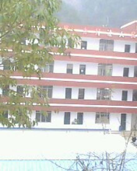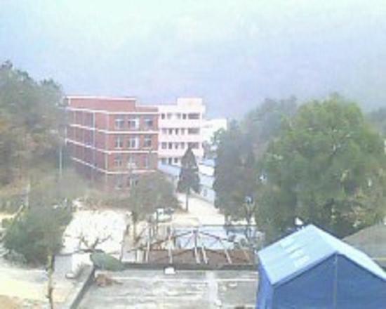 学校的大小是受到了土地的限制,由于场地不是很大,所以学校的领土就受到了极大的威胁,所有的板房几乎是一排挨着一排,中间的间隔绝对不会超过两米之远。但是它的“领空”却是无限大的,站在教学楼的上面足以举目千里,足以俯仰天地,左顾有山外青山,右顾有“蓝天白云”,适于心灵散步,眼睛的旅行。