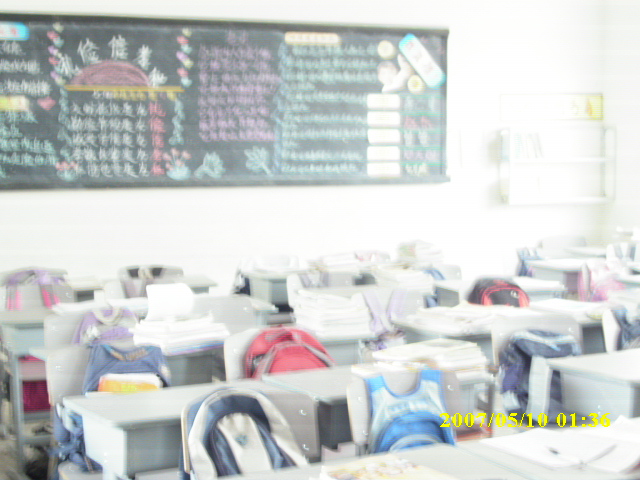 而右边是垃圾箱,垃圾向上面是学习的工具。比如:投影仪、DVD。上面是电视机。老师有时会利用他们来学习。使我们的学习更有趣。学习更努力、更好。前面是黑板。语文老师在上面写上重要的语句,和词语。数学老师在上面写着一个一个的数字。英语老师写着重要的语法。、、、、