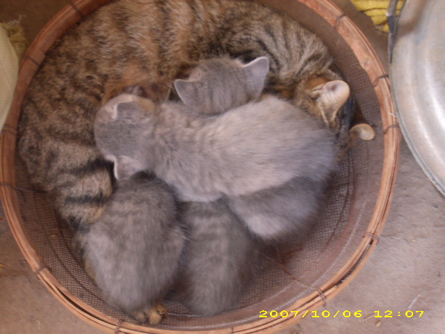 这是猫妈妈捉到老鼠在为孩子,猫一般白天睡觉,晚上行动,因为老鼠也善于晚上出动,猫又有夜视的功能,你看它们睡得多香,我给它们照照片,它们根本不在乎,因为它已经习惯以人们为伴,对它们没有什么威胁,人类是他们的好朋友。