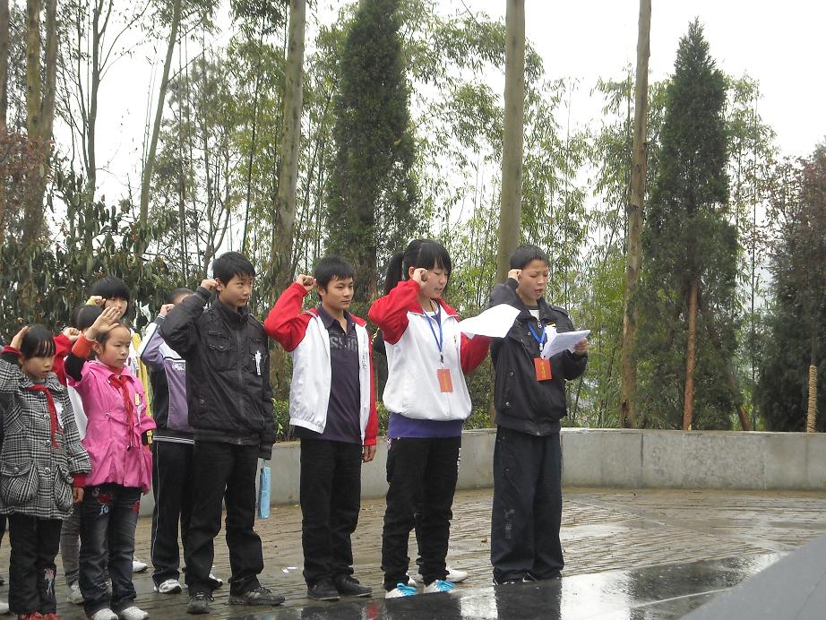 2010年4月1日,天气有些阴郁,还下起了蒙蒙细雨,我们一队人代表松华学校,怀着敬畏的心情,来到西来烈士墓园,祭扫解放战争蒲江战役牺牲的烈士。