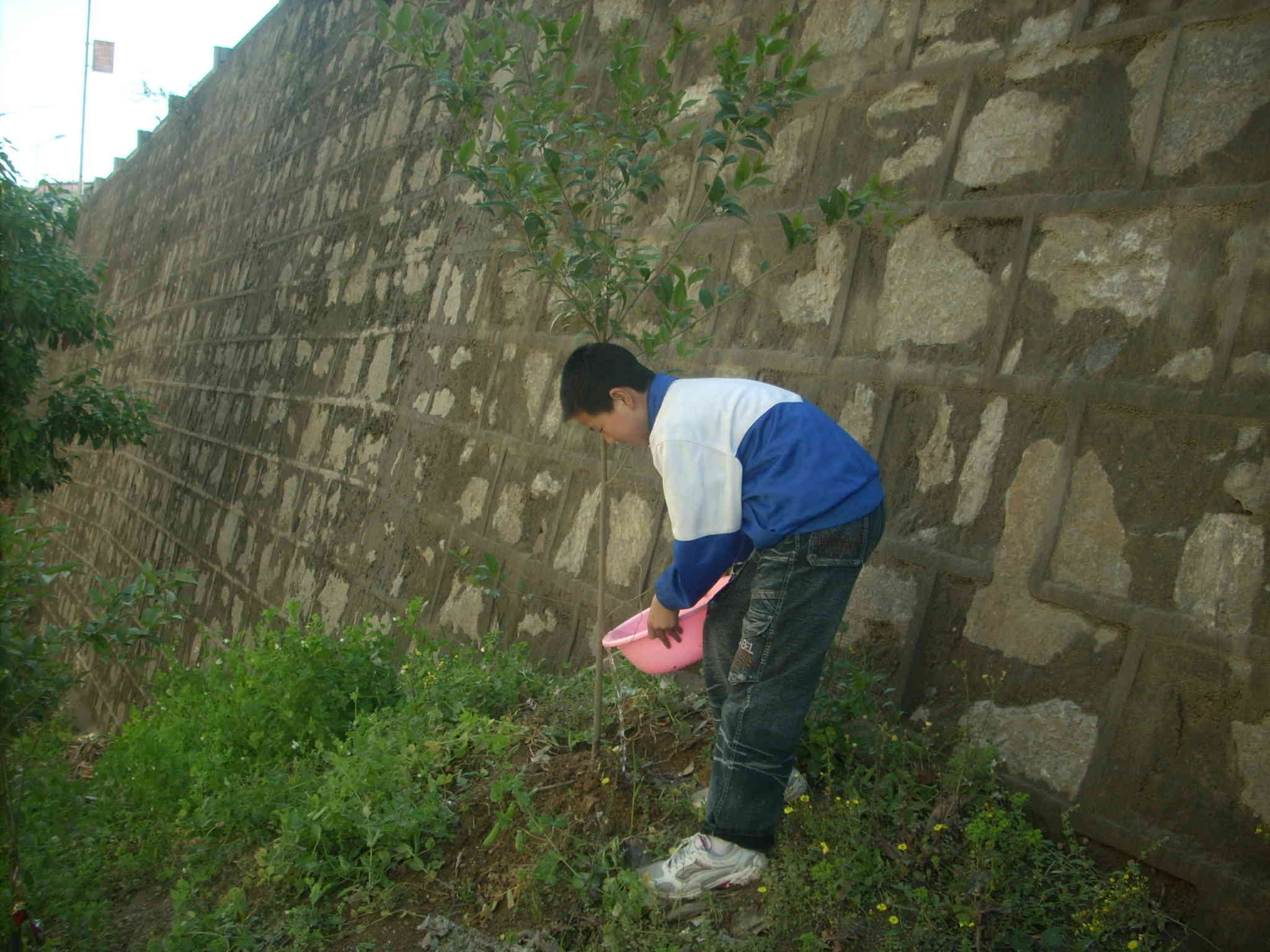 来到空地上后,老师就让我们挖坑栽树。有的同学在挖坑,有的同学在往坑里放树苗和往树苗的根部盖土,有些同学在端水浇灌树苗。尽管同学们很忙碌,但是同学们却非常高兴。