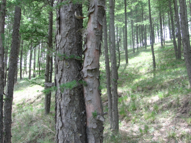 树林里,由于常年松叶的积累,树林里的松针很厚,人走在上面,软绵绵的。如果遇到灾年,人们便可以把这些松针拉回家当柴少,这样便缓解了人们的燃眉之急。树林里的资源取之不尽,用之不竭。