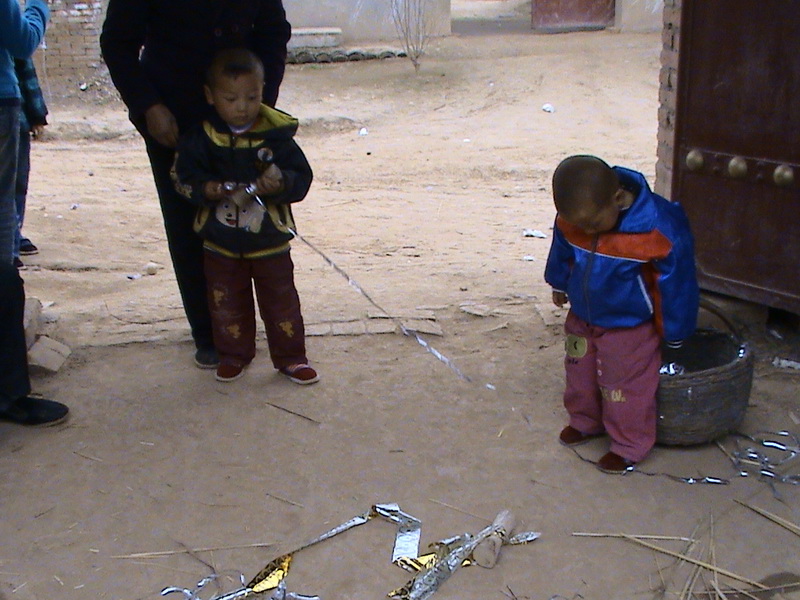 因为从小都生活在城里,所以他对于农活比较有兴趣。平时家里人经常打箔子,在打以前就得先缠线。大人们有的时候就将缠线任务交给我们来做,可小豆豆对缠线也很有兴趣,经常模仿我们的样子认真的缠着。