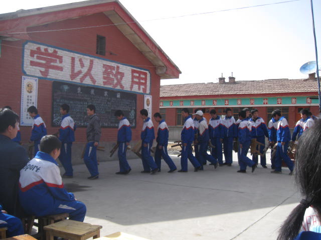 一阵阵清脆婉转的歌声停止了。接着迎来了同学们的一阵阵掌声和为精彩而叫好的呐喊声。然后他们提着凳子井然有序的从后往前依次走出了场地中央。接下来是七一班,在他们刚要进场时,一个男生不小心摔了一跤,这个动作惹得全场的人哄堂大笑,等他站起来时,大多数同学已经在比赛场等他了。