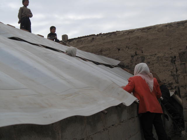 时间一点点的过去了,转眼间已经是下午了。我们才把最下面的万通板和三角铁固定好,到了下面的最后一个时,它好像故意和我们过不去,偏不往固定的地方来,费了好半天才固定好,看着温棚一点点的盖好我们心里都很高兴。