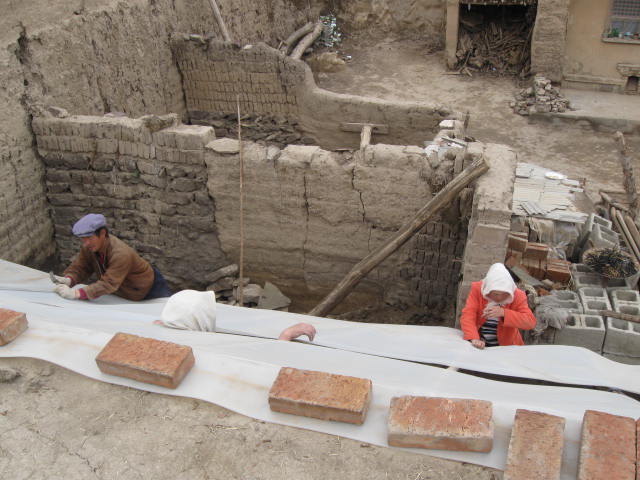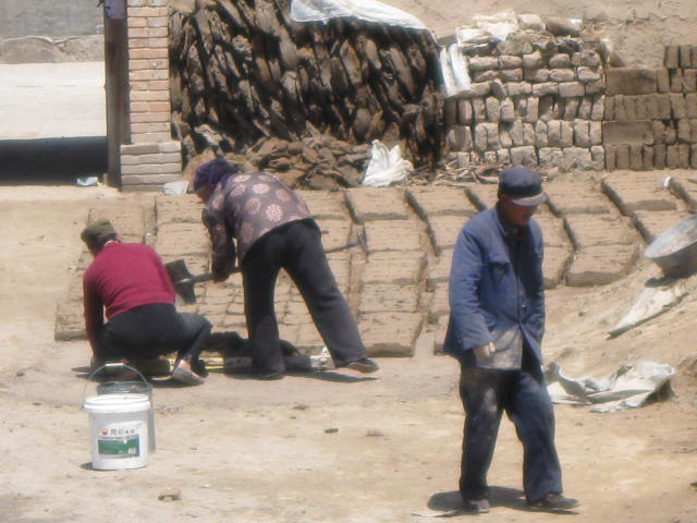 站在房顶上向外看去,只见和我们家隔路相对的王家正在倒土块,一共有四个人,两个人负责抬泥,两个人负责把土块倒好。看看他们的工作,可比我们的要简单得多,只是抬抬泥而已,而我们的可就不同了,不但要抓铝条,还要抓万通板,还要把万通板固定在三铁板上,唉!可真累人啊!