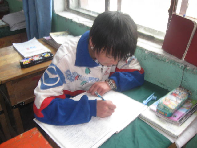她的学习也很好,可以用三个字来形容:“勤且坚”,她的学习态度很好,遇到问题总是积极去解决,如果实在找不到方法,她就问别人,直到弄明白为止。她的反应也很快,老师每提到一个问题,她就马上能说出答案。