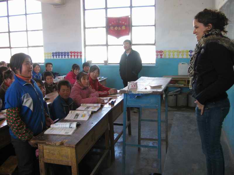 老外要走了,同学们真不愿意让他们走,有的甚至提着凳子追出教室和老外道别,有的含着深情用目光目送着他们,“老外!你们什么时候再来我们学校”。