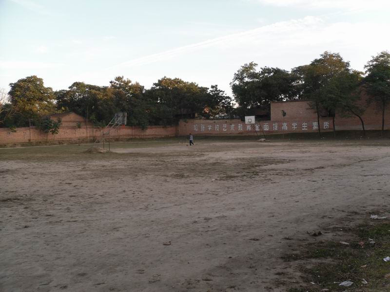 学校的后面是一个很大的操场,篮球杆、双杠、沙坑等体育设施一应俱全,给同学们提供了一个很好的活动场地,姐姐和我高兴的一会儿翻双杠,一会儿跳沙坑,久久不忍离去。