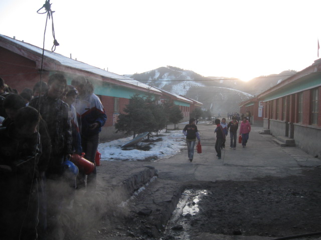 校园中还有几处地方是美丽的。尽管到了冬天着寒风凛冽的日子里,但这些地方的风景依然是一如既往的,这其中之一就是——打水处。无论是春、夏、秋、冬、无论是晨、中、晚只要是到了那个打水的时间,就会有许多的同学来打水,来来往往的同学构成了一幅美丽的画卷。