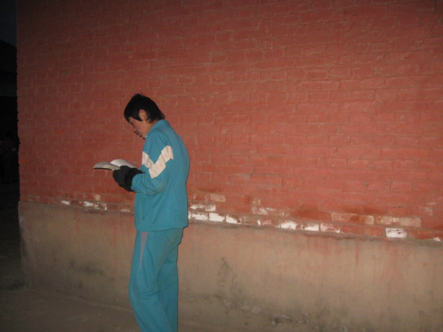 这其中之二就是——晨读。虽说早晨到外面读书没什么大的不了,当然、在夏天时谁也会做到这一点,但一到了冬天就没那么轻易了。在早晨到外面背书的同学寥寥无几,尽管他们快支持不了了,但它们依然不进教室直到把该背的内容背会为止。而那些在冬天早晨一直坚持出去背课文的同学恰恰是对学习特别重视。这怎能不算是一道美丽的一角那?