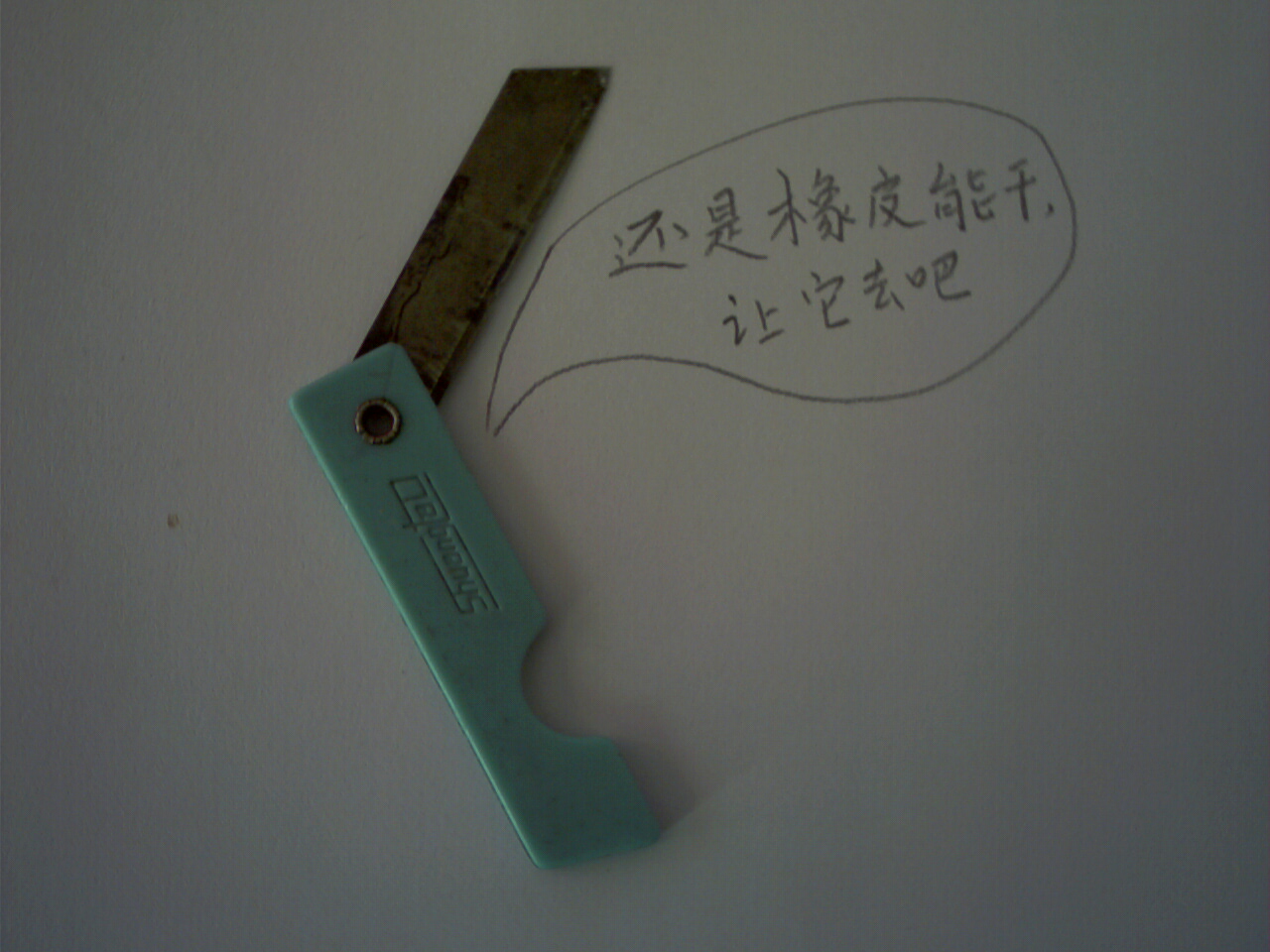 铅笔尖有点钝了,我想削一削,不想小刀也摇摇头推辞了。