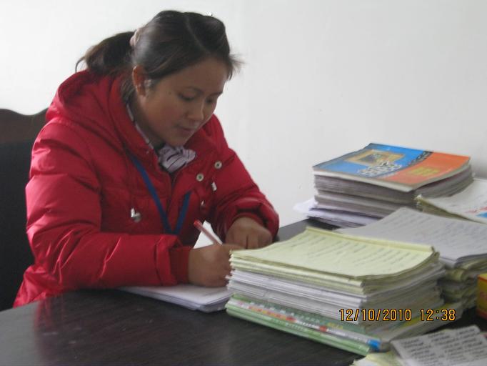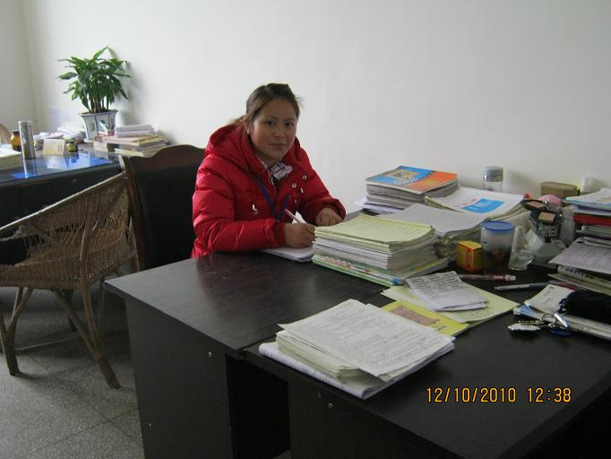 她是一名普通的教师,有着一头乌黑的头发,圆圆的脸蛋上有着一双炯炯有神的眼睛。给我们的感觉,她美丽大方,又充满青春朝气,真像个十四五岁的小姑娘。