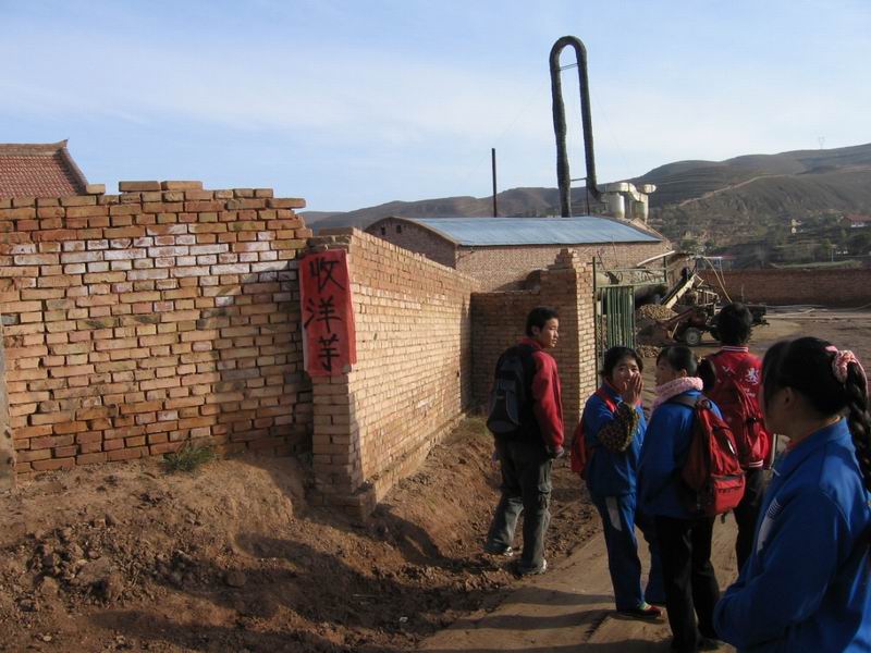 到了2005年秋季,淀粉厂已经开工。这时乡亲们都把自己的洋芋往来运,新开的淀粉厂天天人车拥挤。不到半个月,洋芋已经堆满了淀粉厂。这时勤劳的工人首先把洋芋送进冲洗机,只见零散的洋芋在转动的圆筒里翻动,上面清洁的水哗啦啦地往下流,冲洗过后的洋芋又被送进一个铁皮做的水沟里。往下流淌的清水再把洋芋清洗一遍后,就把洋芋送到粉碎机。