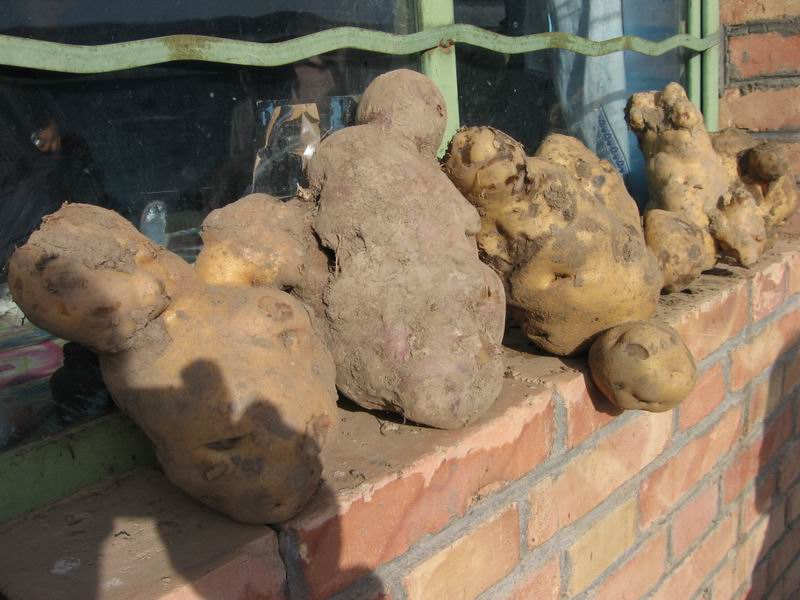淀粉厂里,机器运行正常,洋芋多到没有下脚的地步了。在母养全既简陋又狭小的办公室窗台前摆放着几个奇形怪状的洋芋。当时,我们惊呆了,再看看如今的母养全,微带笑容,春光满面,早已不是那个面朝黄土,背朝天的老农了!