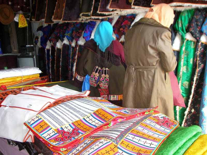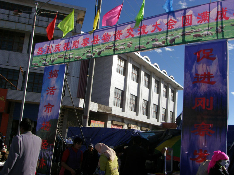 瞧!十字路口两旁,驻扎了一些长长的帐房,进去一瞧!可不得了。里面有各式各样的商品,琳琅满目。排成了一条长龙,望也望不到尽头。来到另一边,有许多的小吃,令你垂涎欲滴,有甜甜的棉花糖、有爽口的冰糖葫芦、有香喷喷的麻辣香肠等。右边是买日用品的,用于购置家庭的商品可真多,有新式的擦玻璃器、有磨刀的沙轮、还有许多,数都数不过来。