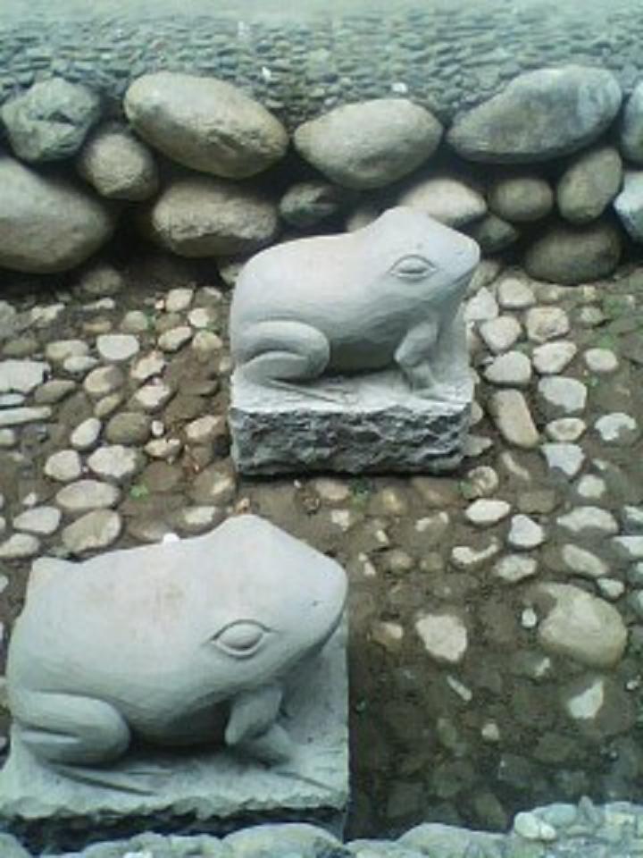 原本的街道现在被一条小溪一分为二了。而这一对石青蛙成了镇河之宝。瞧,多神气儿!