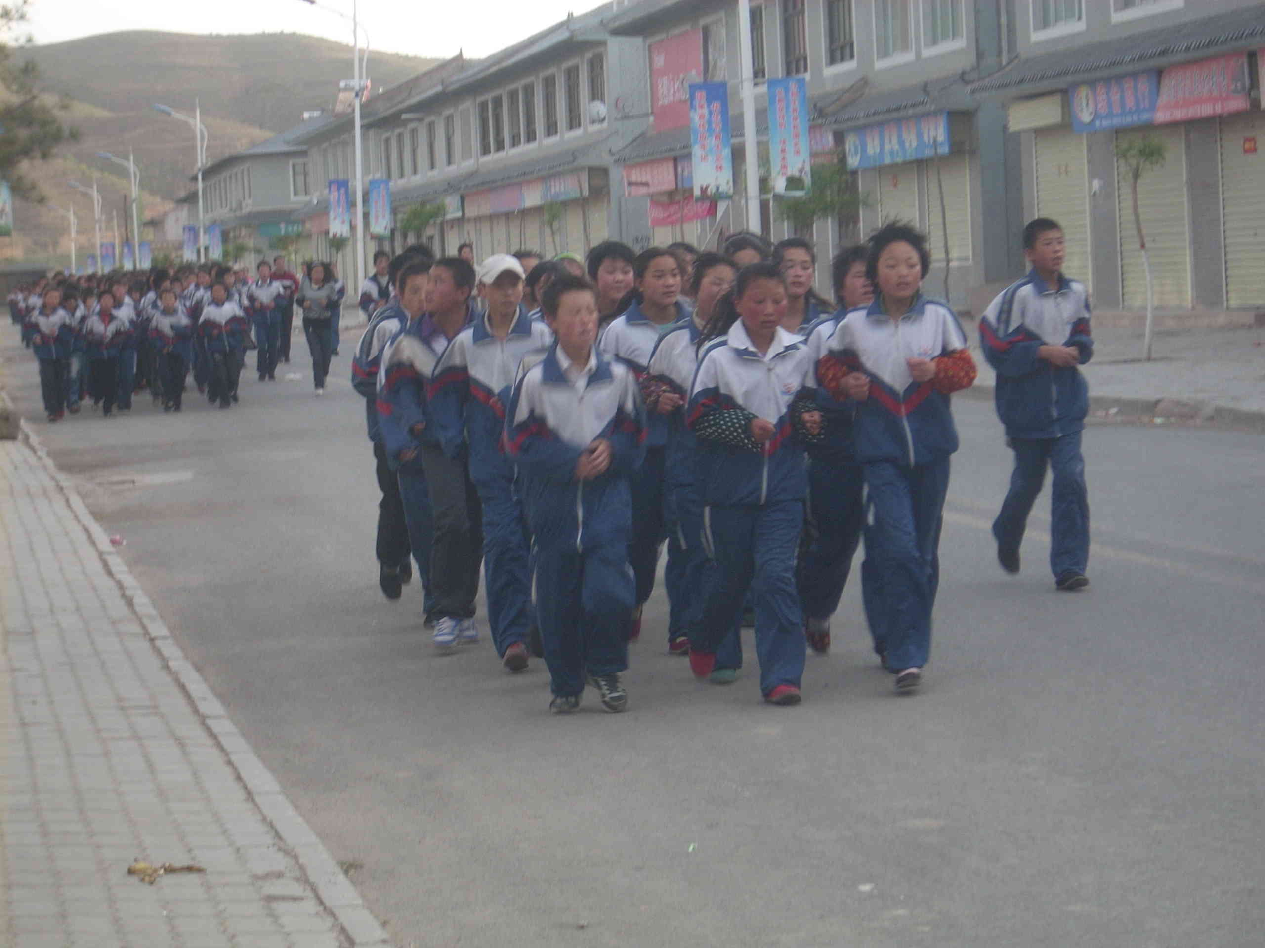 看,这是七年级(1)班,只见他(她)们迈着整齐划一的步伐,跑过来了。他(她)们班的班主任就跟在后边,像一个训练有素的教官。