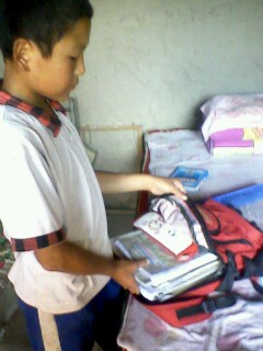 我有一个书包,它每天陪着我一起上学,和我一起分担重量,所以现在,我已和它成了形影不离的好朋友。
