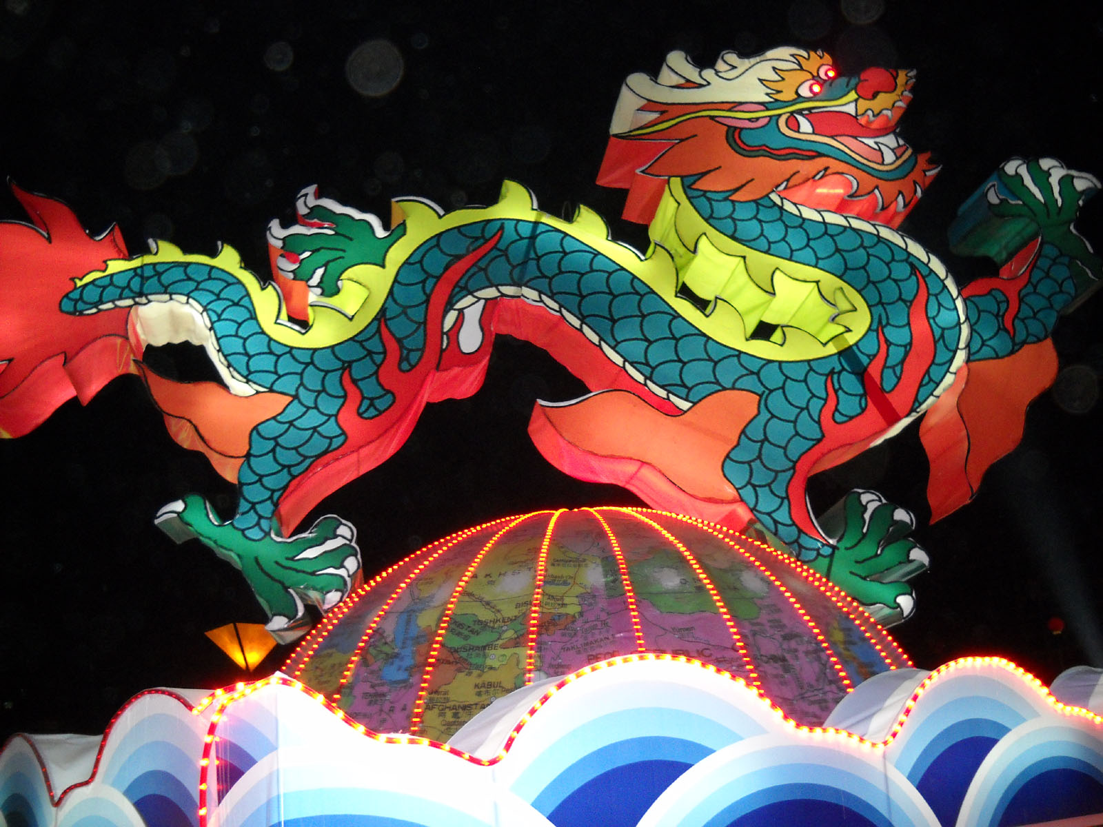 刚一下车,便看见远方灯光闪闪,红黄蓝绿紫,十分耀眼。我迈着欢快的步伐,进入了灯展区域。
