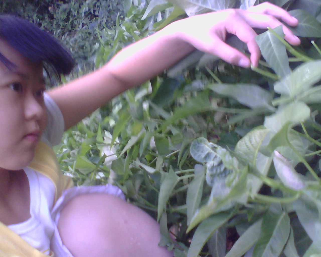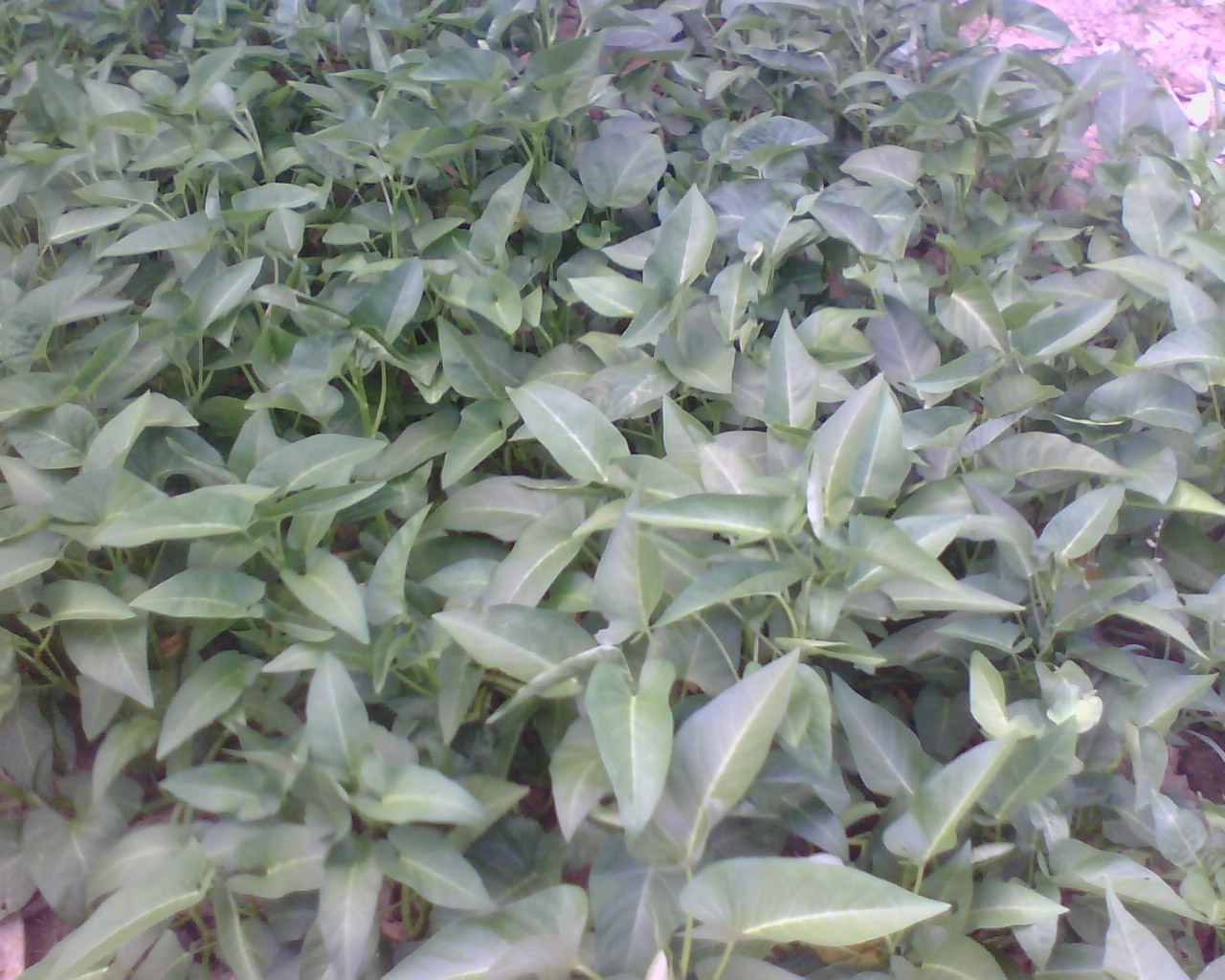我记得空心菜大概分为2种,一种是叶比较尖细的,另外一种是像圆形的,长得绿油油的,有特别顽强的生命力,使人看了心情都会愉快,不经意都会露出笑容。