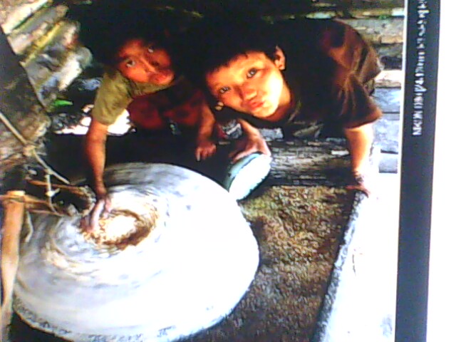 或许是年幼的缘故吧!脑海中总是会有在水磨坊中嬉戏的图画,但也快要记不真切了,夏日,我们一群伙伴钻在水中捉鱼,游泳,尽情的玩乐,某天气温高时,不要说儿童了,就连妇女们都会兴致高昂,将家中堆放的脏衣服;脏鞋等都会拿出来洗一洗,最后晾晒在草地上,一天的时日总是会在搓搓洗洗中结束。寒冬时节,每当水磨坊中的水结成冰时,我们都拿着自制的冰车来滑冰,累了;乏了时,便会往冰上一趟,眼睛总会瞅到冰窟窿里,因为里面挂满了冰晶,随手一摘就会将冰晶拿在手里,放在嘴里又凉又甜,顷刻间使人精神百倍。