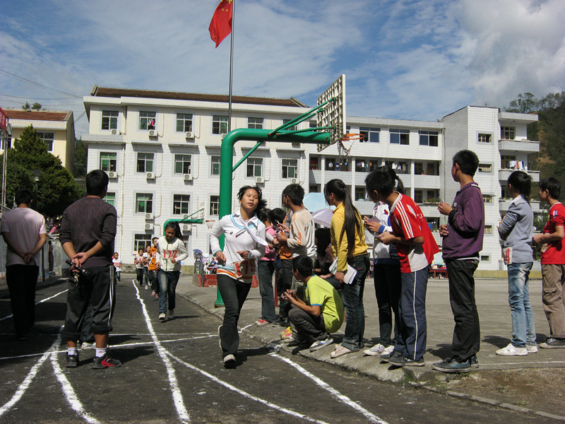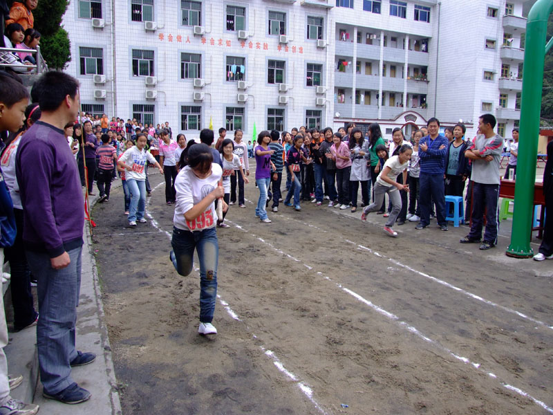 运动会一连开了两天,第二天早晨,太阳似乎是被乌云闷坏了,一个跳跃便窜出了地平线,把大地照得如金子一般闪耀。可却给长跑健儿们出了一个大难题哟------跑道太干燥。太阳调皮的与健儿们嬉戏,照的所有人"红面泛光",跑道的干燥并没有阻拦住健儿们的步伐。无所畏惧的健儿们依然驰骋在赛道上,纷扬的灰尘映衬着健儿们的矫健英姿,一圈又一圈从不放弃。看得见的只有坚持,只有勇敢,没有怯懦,没有退缩,就这样一直坚持下去,终于扑向了终点。