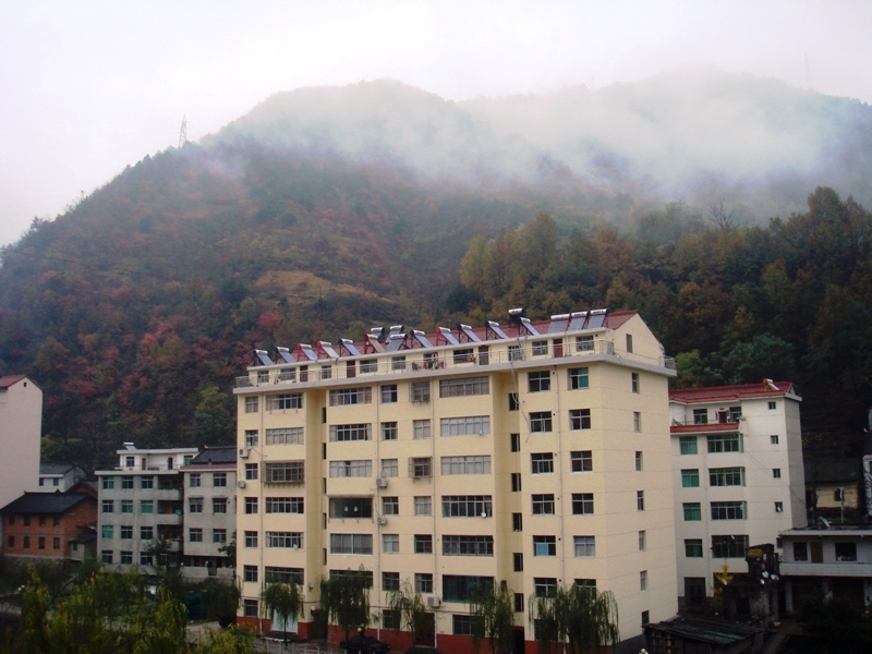秋,是富有诗意的。看,楼房背后的大山那,好象一位害羞的小姑娘,还蒙着一层神秘的面纱。山上的树木更加地苍翠挺拔了,五彩缤纷的有红的,黄的,金的,美丽极了。构成了一幅秋天的风情画。