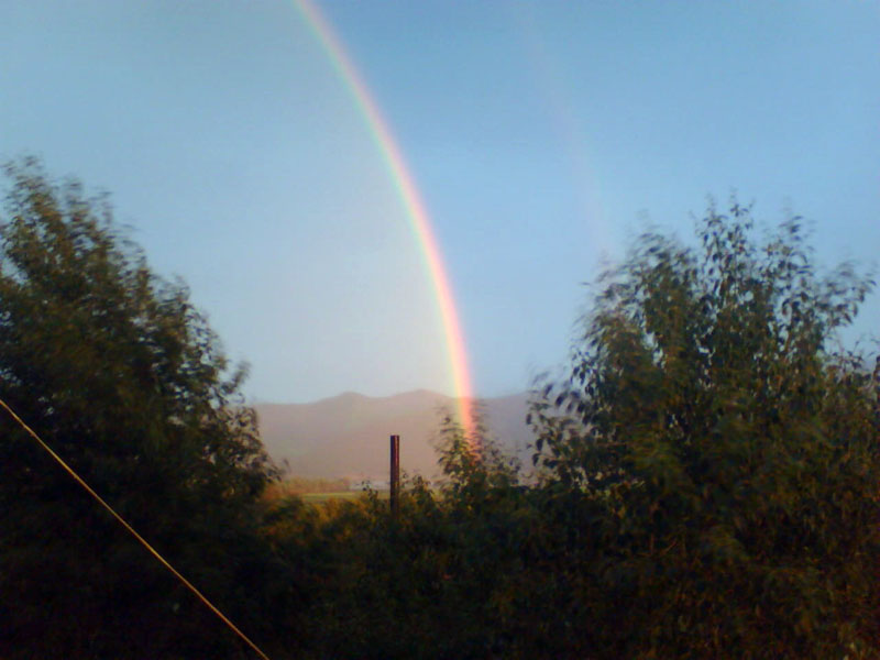 远处,慢慢地飘来了两朵白云,可不一会儿就被晚霞染红了,可它们还是不依不饶地往前飘着,前面的一朵云变成了一只可爱的小狗,紧跟在那朵云后面的一朵云变成了一只狼,眼看就要被抓住了,聪明的小狗冲进了云层里,狼找不到小狗,只好跟着钻了进去。