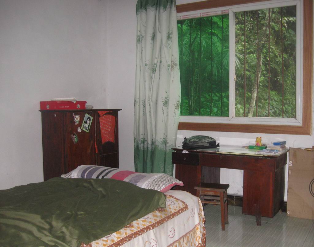 我自己有一间宽大的房间,你们随我一起来看看。刚打开房间就会看见一扇窗户,在窗户的前面放着一张写字台,在写字台的右边放高二米多的衣柜。