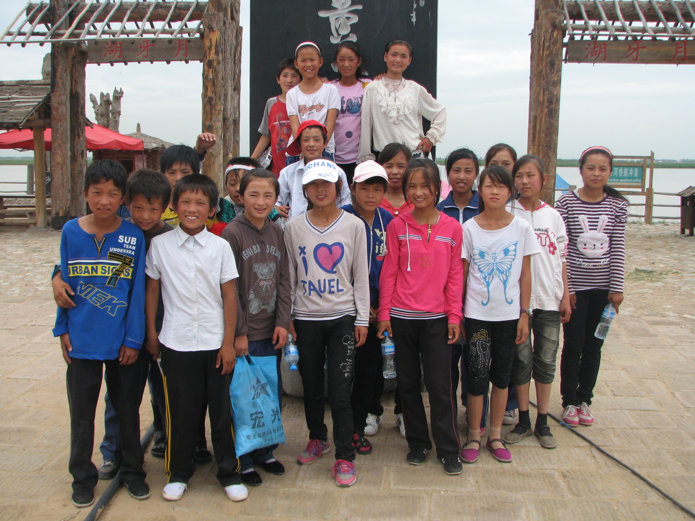 在大门外的一百米处,有一块大石头,上面是雕刻后用红色漆写在上面的四个大字——黄沙古渡。地下是用水泥筑起的高约1,6米的正方体底座,上面也用红色漆写了黄沙古渡四个字。正门前,周围是用草席搭成的凉亭,还有像小房子似的建筑。门口两旁建的像长城,管理人员不让进,说买票才可以进,无奈之际我们选择走后门。我们把自行车放到附近的人家出,向沙漠走去······